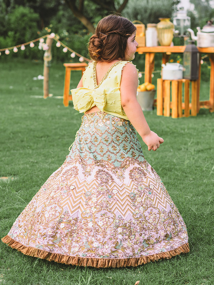 Elpis – A delicate epiphany of unconventional embellishments and a beautiful drizzle of reflecting sparkle with intricate mirror work.
